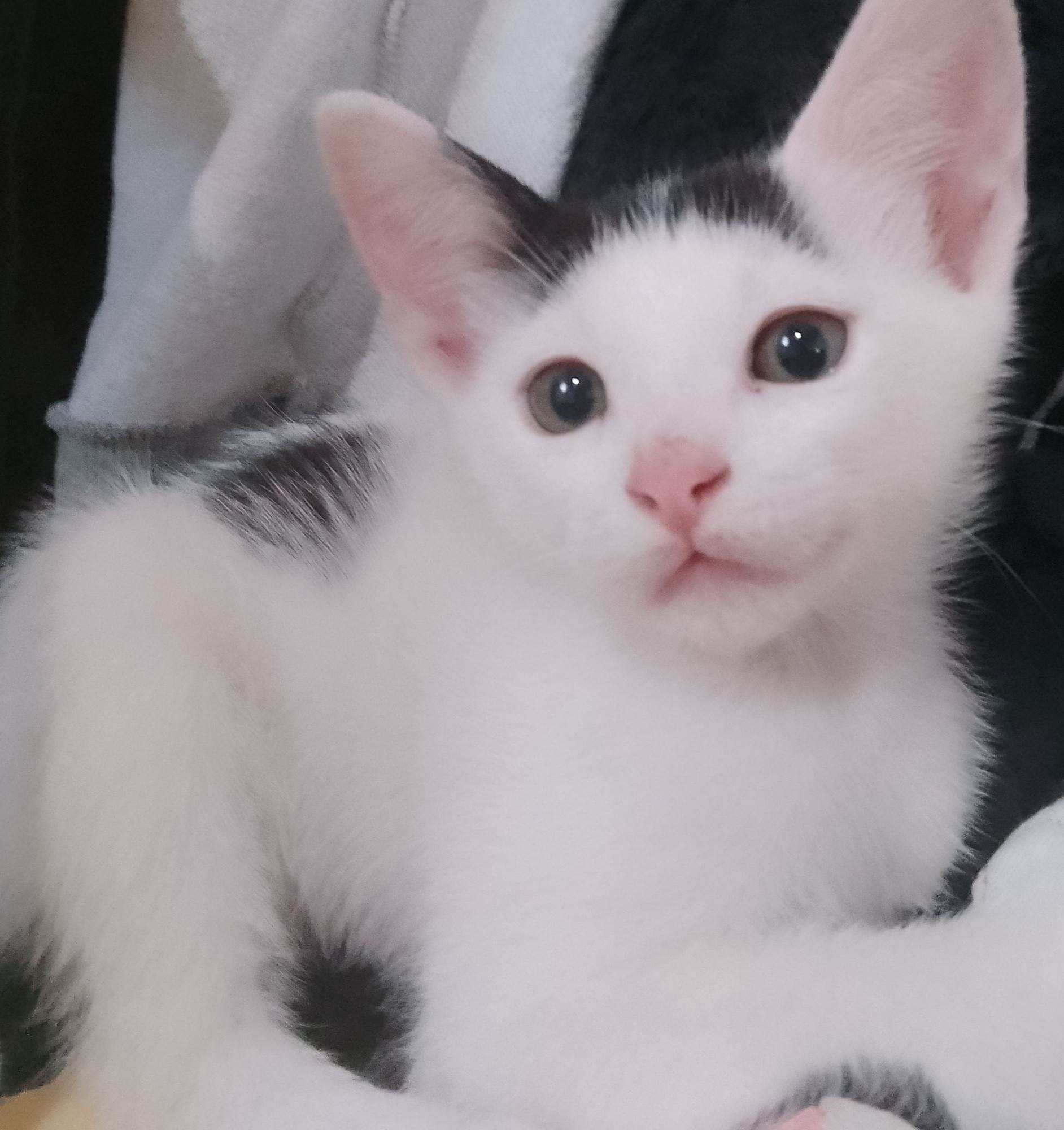 Gata média, 2 a 6 meses, SRD-ViraLata, cor Branca/Preta.